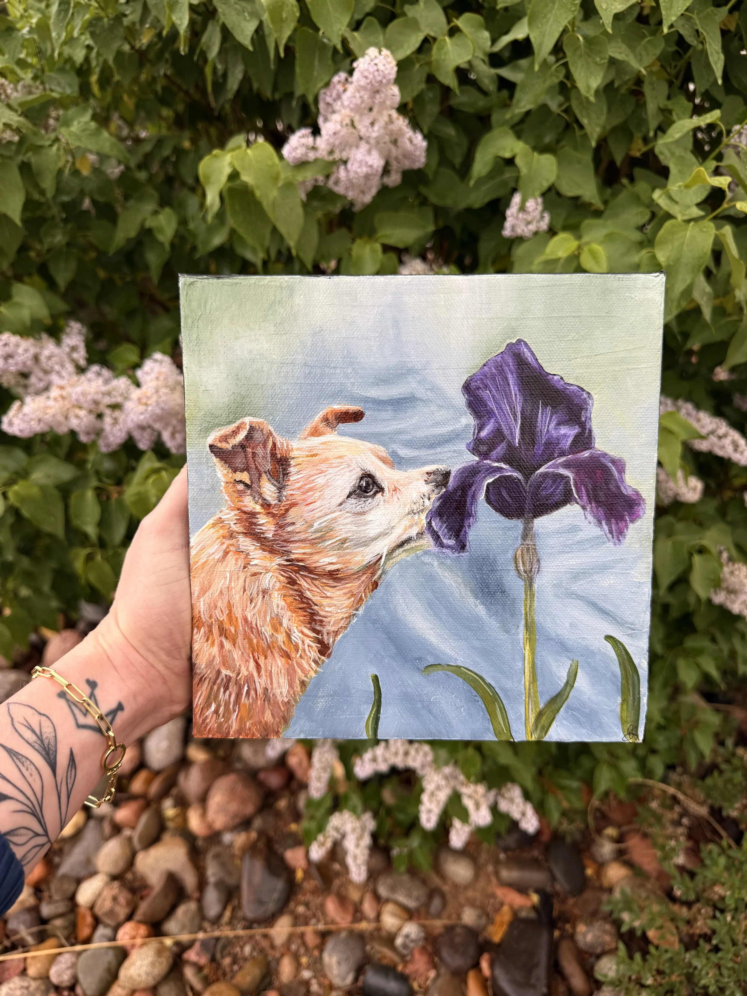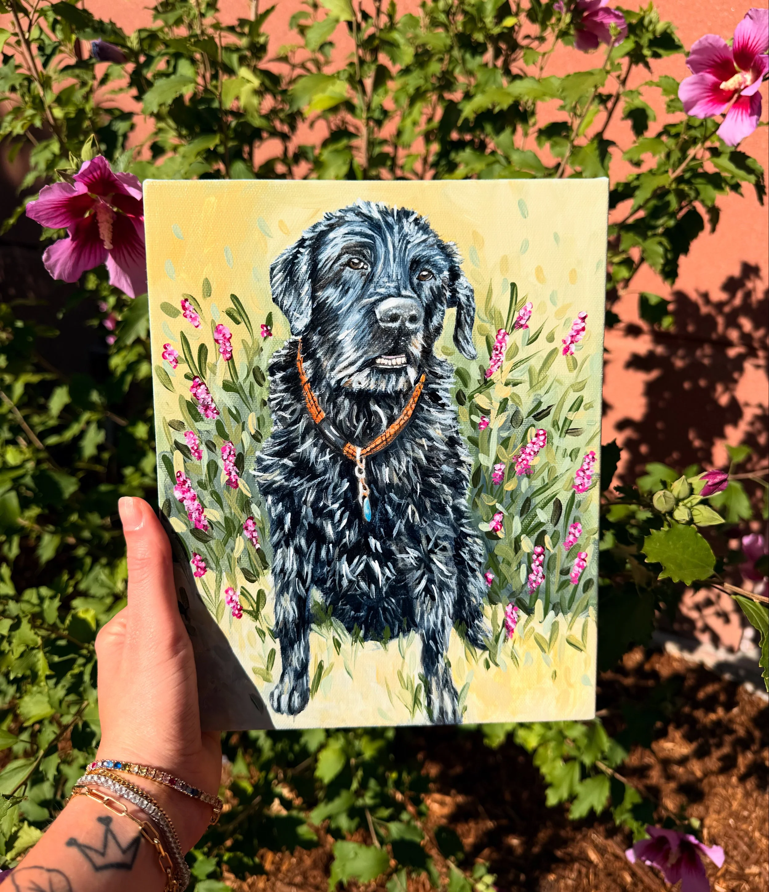 Capture the heart of your beloved companion in a hand-painted portrait.